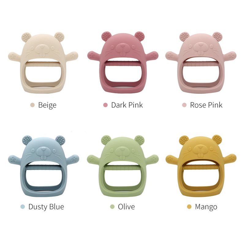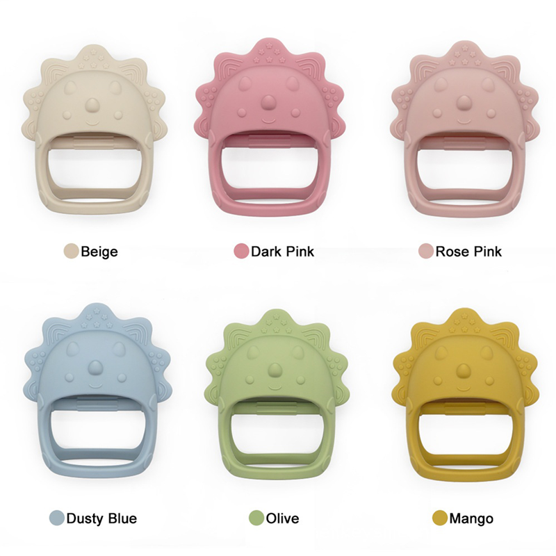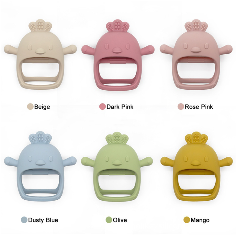 This teething toy is made of food grade silicone, BPA free. High temperature washable. The cute shape makes the baby love it, and the grip can exercise baby's grasping ability. Using this great item to accompany the baby period of teething and soothe your baby when they cry! Three different styles can be available: chick, marmot and triceratops. Can customize your logo on it.