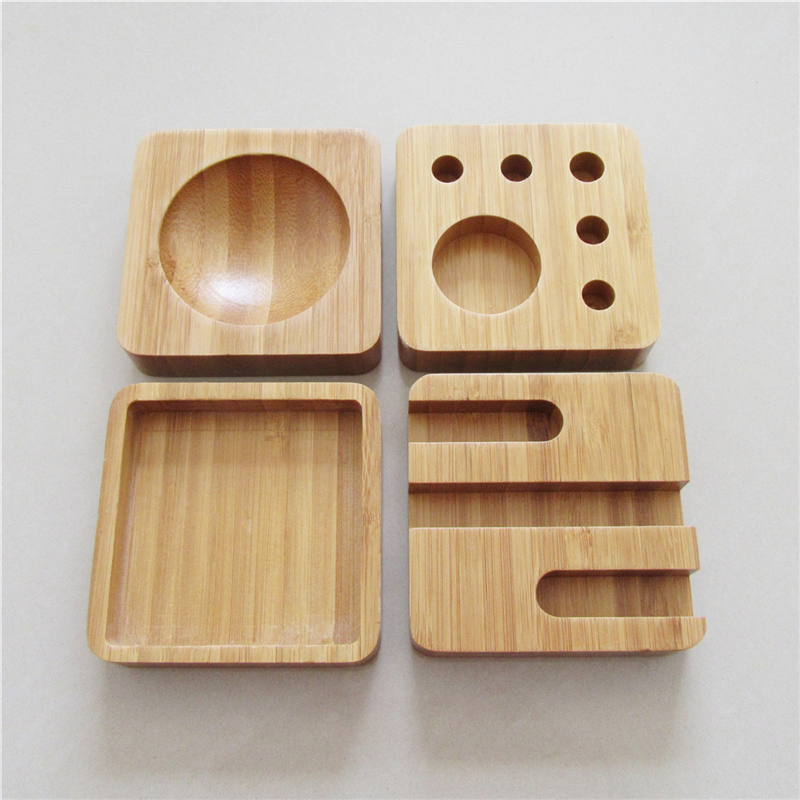 Now's the right time to add this desk accessory to your marketing campaign! A four-piece bamboo desktop organizer that has a phone/tablet stand, note pad holder, a paper clip organizer, and pen holder.
