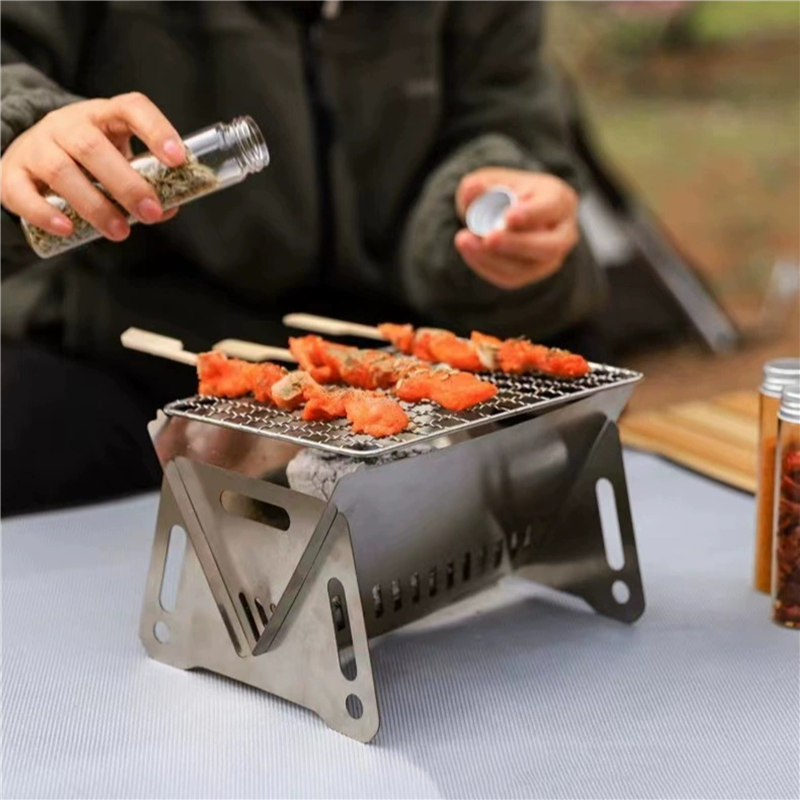 The material of this barbecue grill is stainless steel. Can be disassembled for easy portability. Suitable for grilling various foods. Enjoy the wonderful time of outdoor camping. Can customize your logo and pattern.