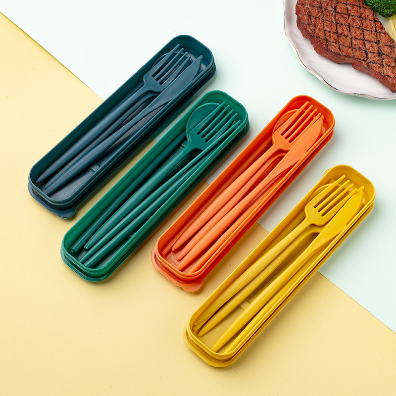 Eco-friendly branding at its best. The cutlery set is made of wheat straw and plastic, lightweight but durable, reusable and can be used for long time. Include knive, spoon, fork, chopsticks and a case.