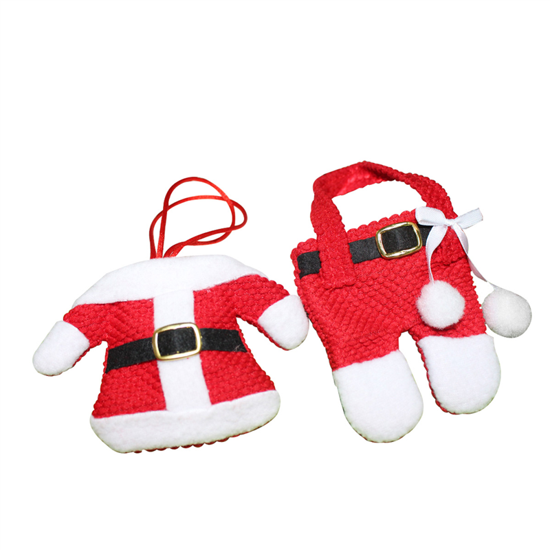 This Christmas bags is a set of coat bag and trousers bag from Santa Claus. This can serve as fork and knife set bag, candy bag or other snacks which is very suitable for Christmas gift.