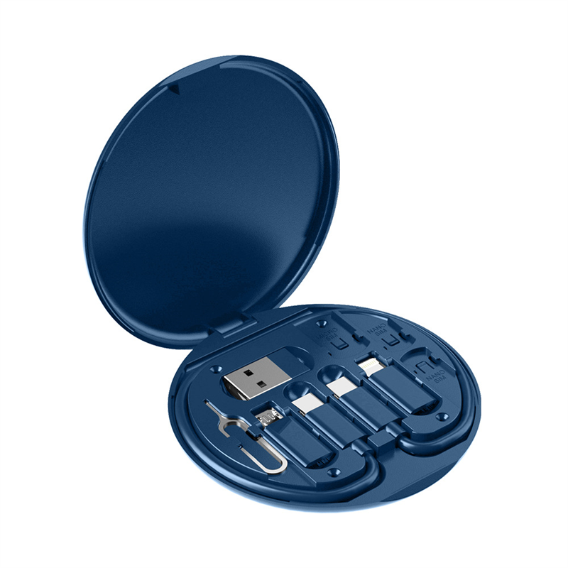 No fumbling for the right connector through a tangled mess. This portable storage box has all you need to charge and sync your device. The storage case protects the ends of the cables, and prevents them from getting tangled in your bag.