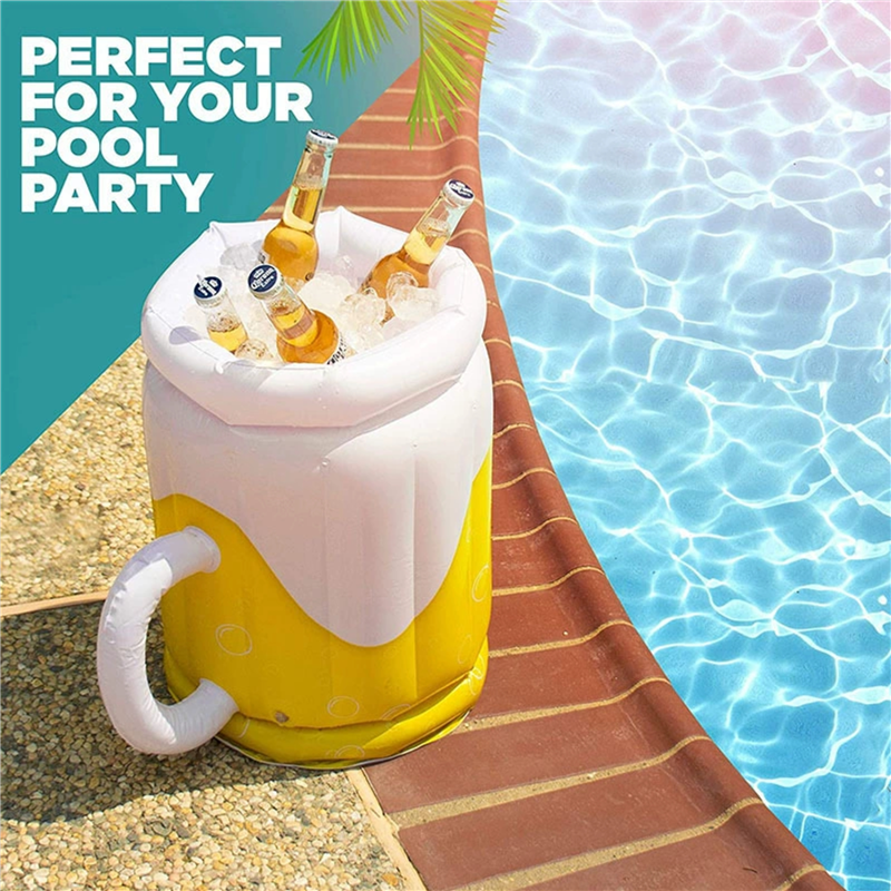 This ice bucket is made of environmentally friendly PVC and shaped like a beer glass. It has a large capacity and can hold beverages, food, and anything you want to refrigerate. When not in use, it can be folded to save space. It is suitable for picnics, barbecues, tailgates, and other outdoor activities.